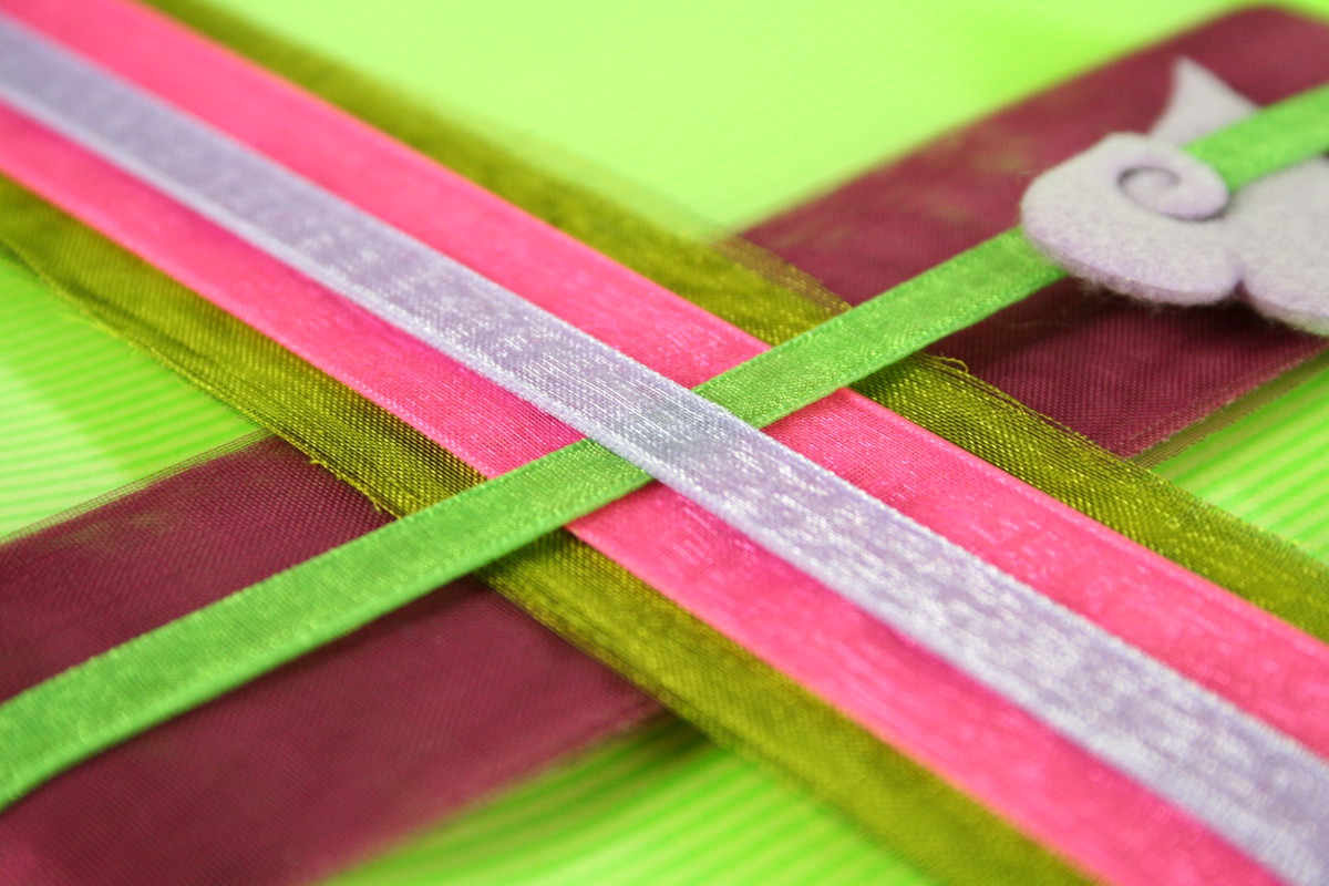 Tipp: Geschenkband aus Organza, das über das Geschenk gelegt wird, kann auf der