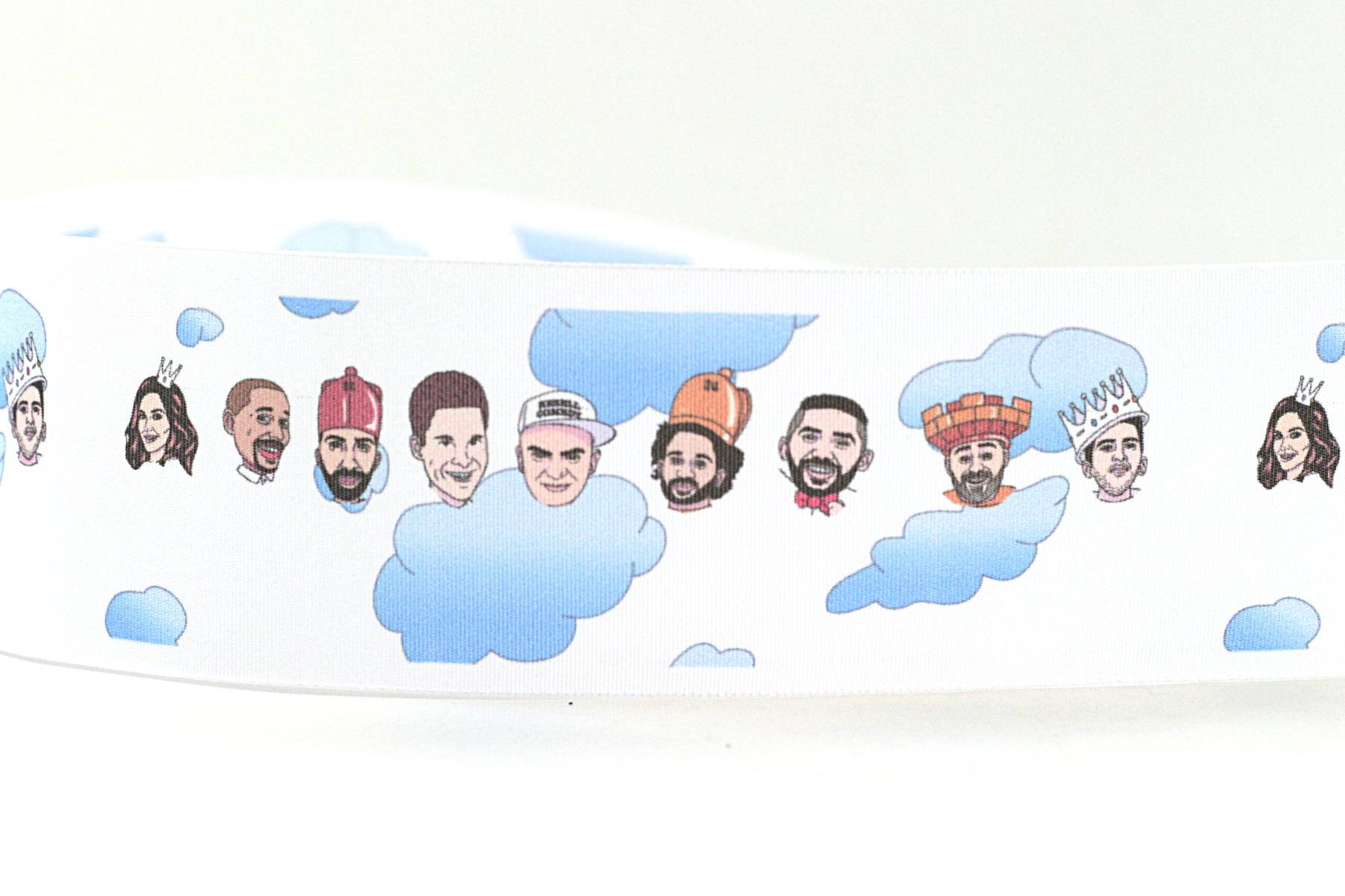 Eine Stand-Up Comedy Show gab dieses ausgefallene Band in Auftrag. Es zeigt die Comedians, die Teil der Show sind. Die Grafik wurde speziell für das Band entworfen und sowohl Kunde als auch wir waren begeistert davon, wie detailgetreu gedruckt werden kann.